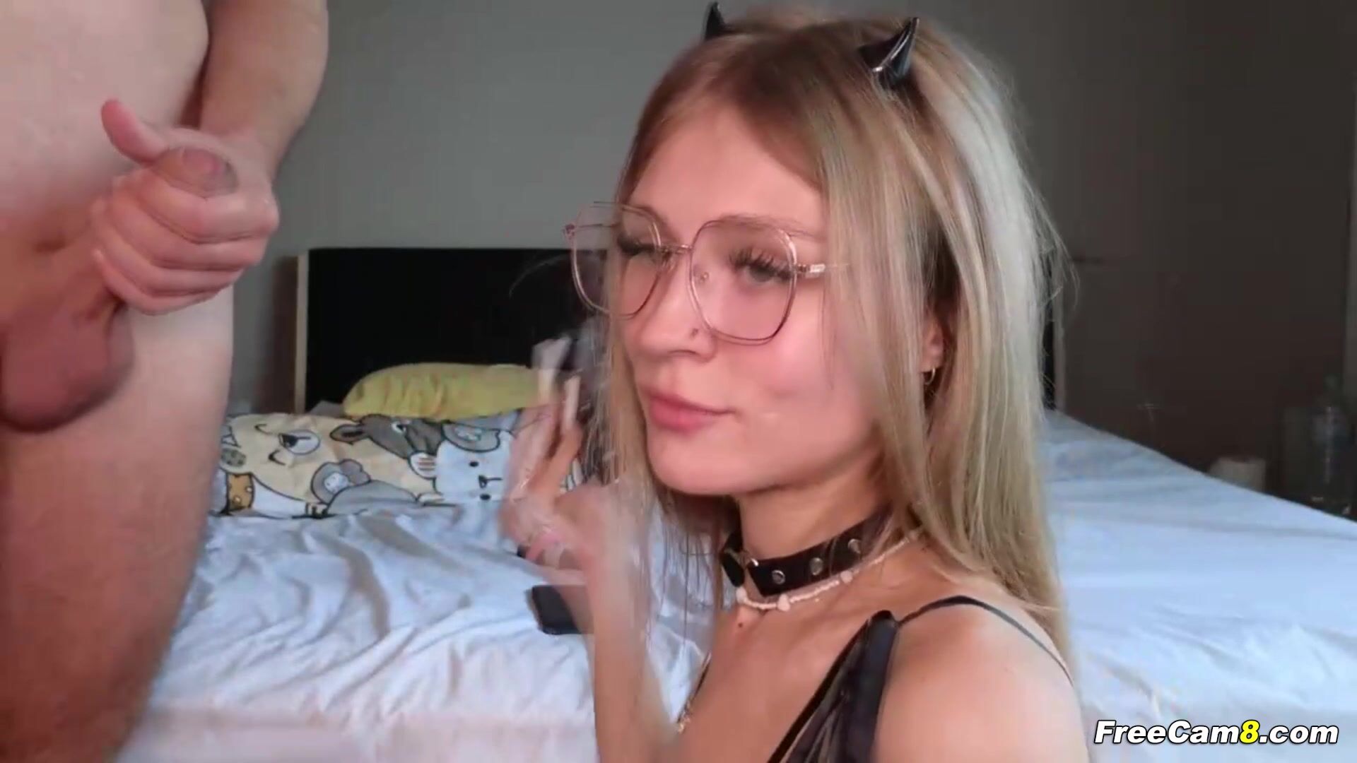 Sexy babe with flexible body getting herself ready for an intense fuck she will going to experienced. Watch this petite babe with her glasses on ready to fills her mouth with cum. She gets on her knees to sucks lover's dick and ready to swallows his cum. She sucks like an expert and deepthroats him. Her tongue expertly flicking against the sensitive tip of the dick, driving the recipient wild with pleasure. The sound of wet, slurping noises with her saliva dripping from her chin as she devours him. Her mouth stretched to its limits around his dick.