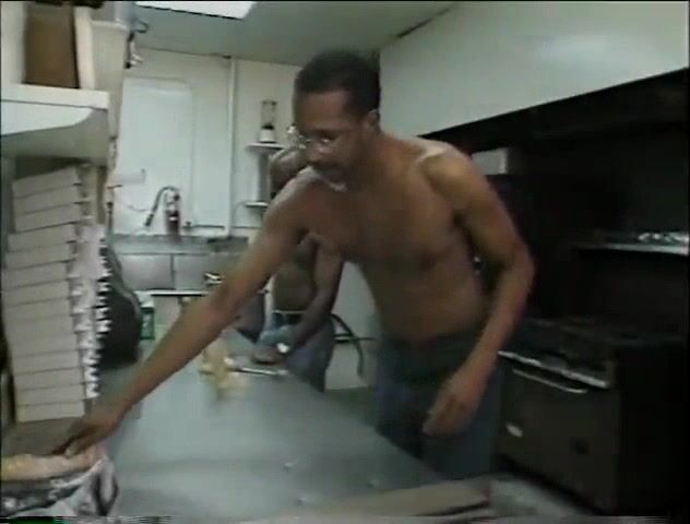 Jillian Mayor in pantyhose fucked by 2 big black guys in the restaurant kitchen
