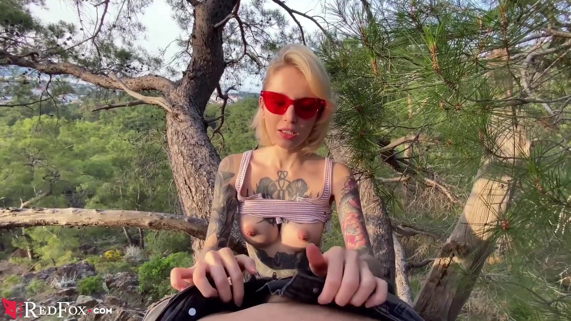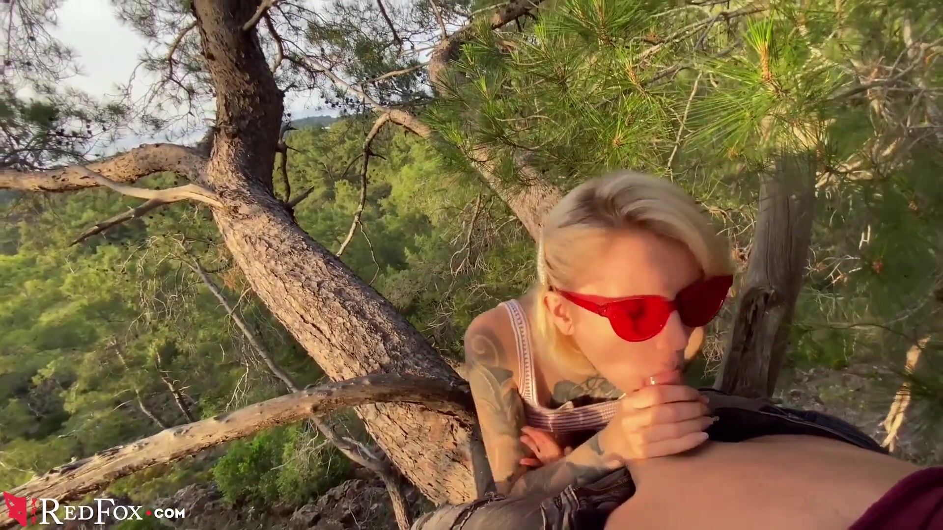 Hot Babe Deepthroat Big Cock on the Tree - Cum Swallow