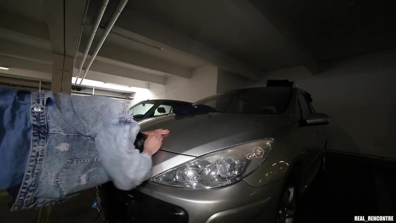 European slut getting fucked by Black guys in the parking lot